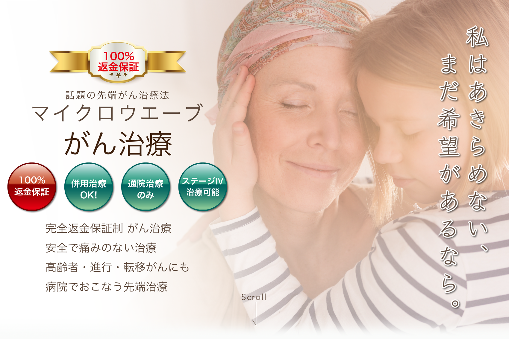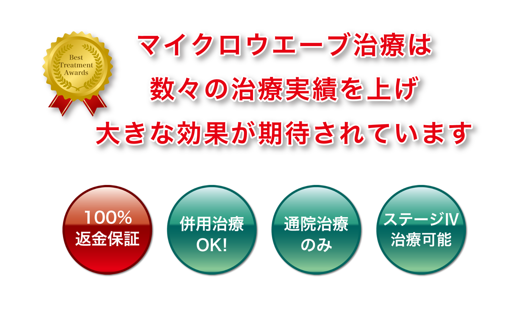 家庭用の電子レンジで食品を加熱する原理で、医療用マイクロウエーブ機より照射された高周波が、がん細胞を加熱します。